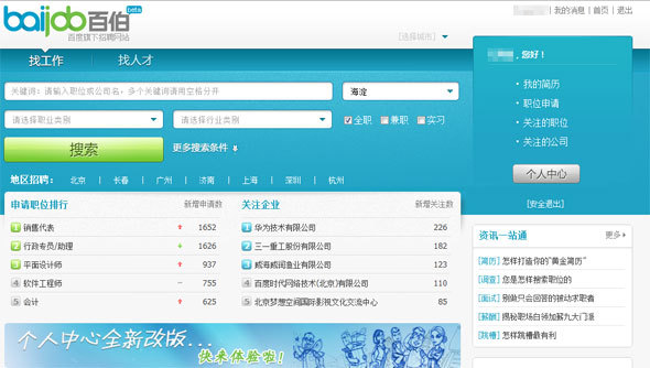 百度旗下招聘网站百伯上线 首页砍掉大幅广告